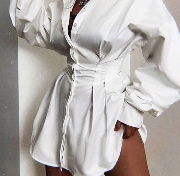 U pitanju je mini pamučna haljinica, jednostavnog kroja. Sečena visoko ispod grudi, sa rukavima do lakta, koji se, naravno, nonšalatno podvrću. Model se rađen klot ili u varijanti sa dugmićima i/ili klasičnom ili "ruskom" kragnom, da podseća na haljinu-košulju i bez ikakvih dadatih ukrasa. Dakle, minimalizam u svojoj esenciji.