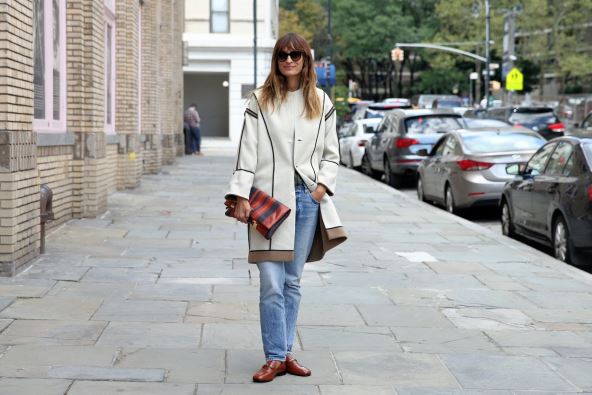 Šezdesetpetogodišnja Lin Slater, koja je na Instagramu postala poznata kao Accidental Icon, ima slabost prema kaputima, koje često nosi sa farmerkama. U ovom autfitu kombinovala je farmerke sa cvetnom košuljom i dugačkim crnim kaputom, dok je stajling upotpunila baletankama i okruglim sunčanim naočarama.