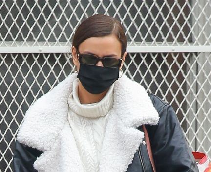 Za opuštenju šetnju sa svojom mezimicom, Irina je ponela efektnu zimsku jaknu u kombinaciji sa helankama i belom rolkom.