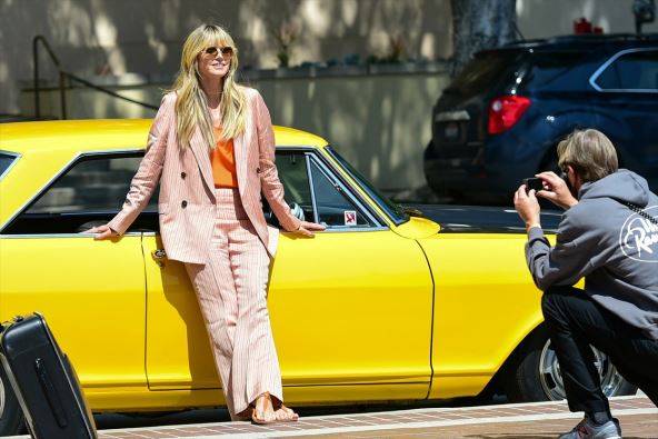 Manekenka Hajdi Klum uslikana je u ultimativnom trendi komadu - odelu u nežno roze boji.