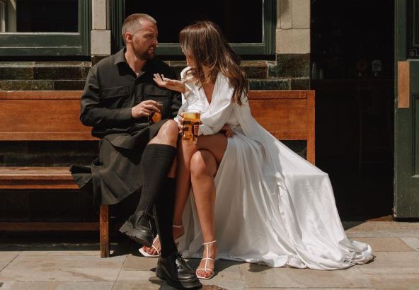 Tačno četiri godine nakon veridbe, Katarina Mira-Rouz i njen partner su izrekli sudbonosno DA na malom venčanju. Za svoje letnje mikro venčanje u Londonu na kojem su uz njih bili samo njihovi roditelji i njihov verni pas, Katarina Mira-Rouz odabrala je divnu venčanicu brenda Luna Bea Bride koja savršeno odgovara njenom modnom stilu, ali i njenom trudničkom stomaku. Na dan venčanja, Katarina je bila u 34 nedelji trudnoće, a maksi venčanica na preklop od raskošnog satena bila je savršeni odabir.