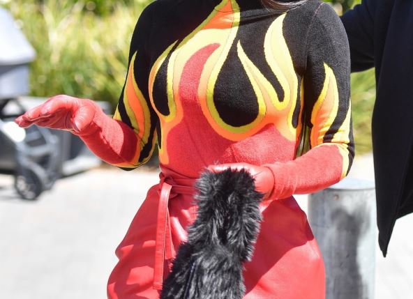 Slavna 41-godišnjakinja svoje bujne obline istakla je u crvenoj kožnoj suknji na preklop sa dubokim strukom, a upotpunila ju je trikotažnom bluzom sa printom plamena, koja je zaista doprinela da Kim izgleda kao hodajuća vatra.