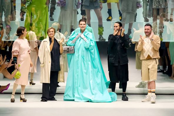 Takođe, sinoć je blistala na reviji istoimene kuće kada se pojavila u ovesize mantilu u boji mente. Njen spektakulatni povratak je propraćen aplauzom.