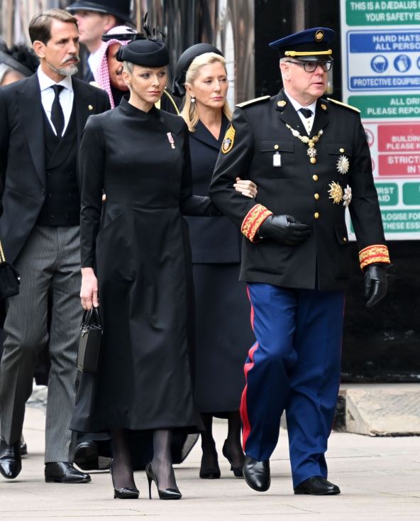 Princ Albert od Monaka pojavio se sa suprugom princezom Šarlot koja je uprkos tužnom povodu izgledala fascinantno. Nosila je svedenu dugu crnu haljinu, kao i fascinator na glavi.