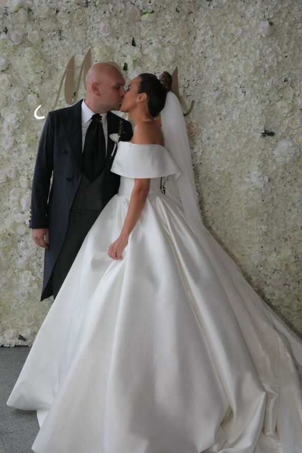 Tom prilikom mlada je odabrala dugu belu venčanicu sa korsetom, istaknuvši na taj način tanak struk i sjajnu liniju, iako je u drugom stanju. Venčanica je na korsetu imala veliki volan koji ju je dodatno ulepšao.