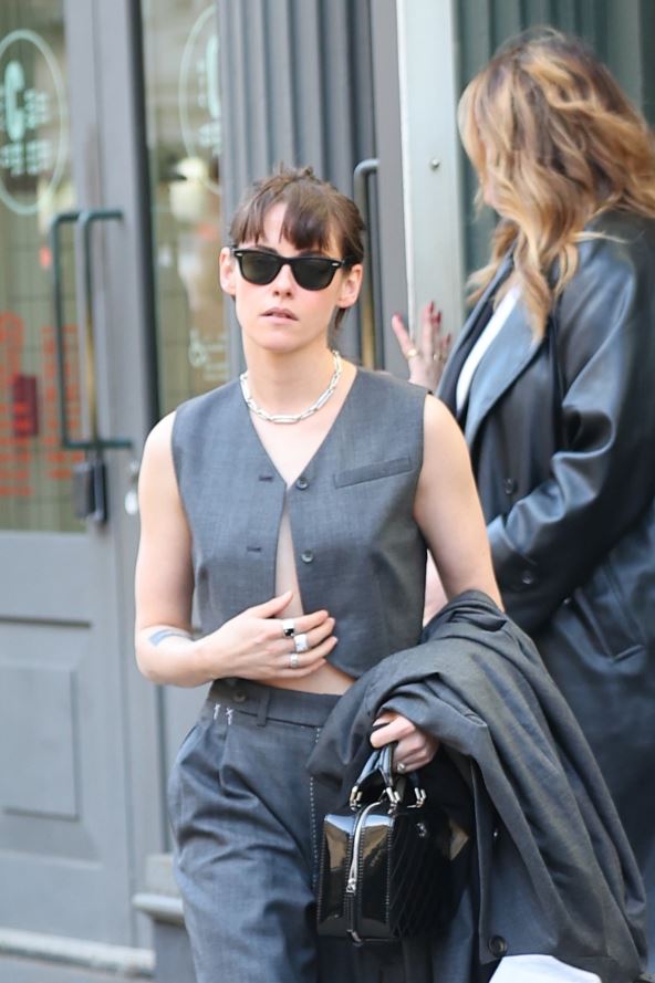 Glumica Kristen Stjuart, učinila je upravo to. Ona je na ulicima Njujorka za promociju svog novog filma ,,Love Lies Bleeding", obukla sivi prsluk bez grudnjaka.