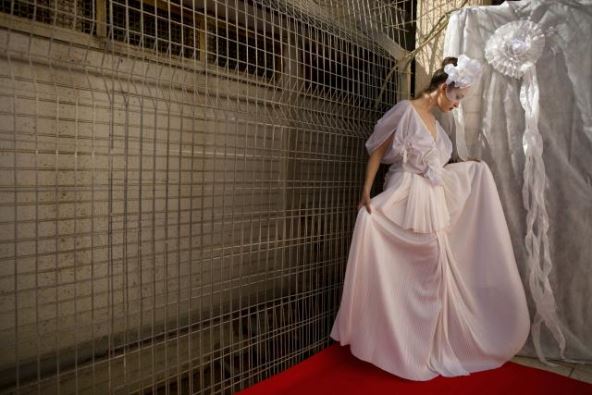 Modeli su paradirali na crvenom tepihu ispred bodljikave žice i iza velikih zidova.
