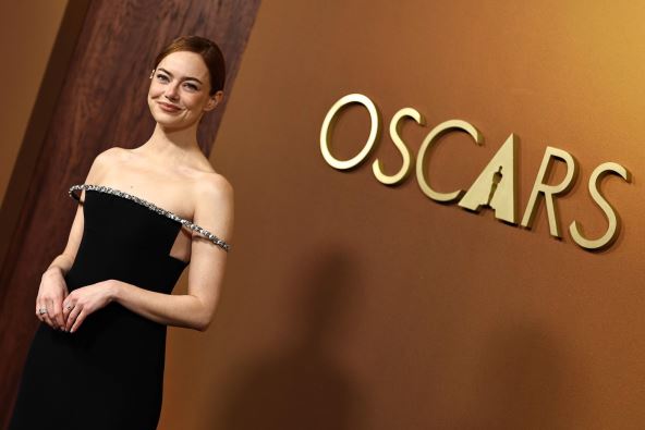 Apsolutna zvezda Governors nagrada bila je Ema Stoun, koja se odlučila za dramatičnu, a opet klasičnu crnu haljinu sa potpisom Nikolasa Gaskijea za brend Luj Viton. Iako je haljina bila duga, njena ključna karakteristika je bio elegantno spušten dekolte koji je otkrivao ramena, dodajući dozu senzualnosti bez narušavanja sofisticiranosti. Njen izgled je bio savršen primer kako se klasična boja može osvežiti modernim krojem i detaljem poput njenog u vidu srebrnih bretela, stvarajući utisak bezvremenskog holivudskog glamura.