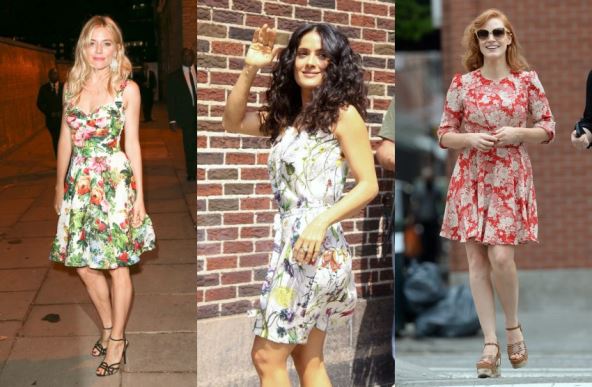 Glumice Sijena Miler, Salma Hajek i Džesika Častejnodlučile su se za lepršave kratke haljine cvetnog printa. Dok je Džesika uz preslatku haljinu obula moderne platforme, Sijena je svoj stajling zaokružila elegantnim sandalama.