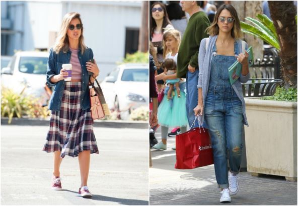 Džesika Alba za ispunjavanje svakodnevnih obaveza i druženje sa ćerkicama prednost daje udobnosti. Lepa glumica bira opuštene modne komade poput tregerica šireg kroja i farmerki, koje kombinuje uz pamučne majice i patike.