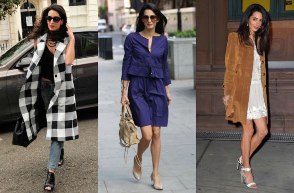 Amal prati modne trendove i prilagođava ih svojim željama. Visoki struk i široke nogavice modni je trend već nekoliko poslednjih sezona, a Amal zna da ovaj tip modela naročito pristaje visokim ženama izdužene figure, pa ga rado bira u neformalnim situacijama.