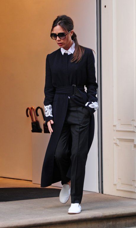 Viktorija Bekam najbolja je reklama za odeću i obuću koju dizajnira. Snimljena je na izlasku iz svog londonskog butika od glave do pete obučena u komade iz poslednje kolekcije koju je nedavno predstavila i koja će se uskoro naći u prodaji.