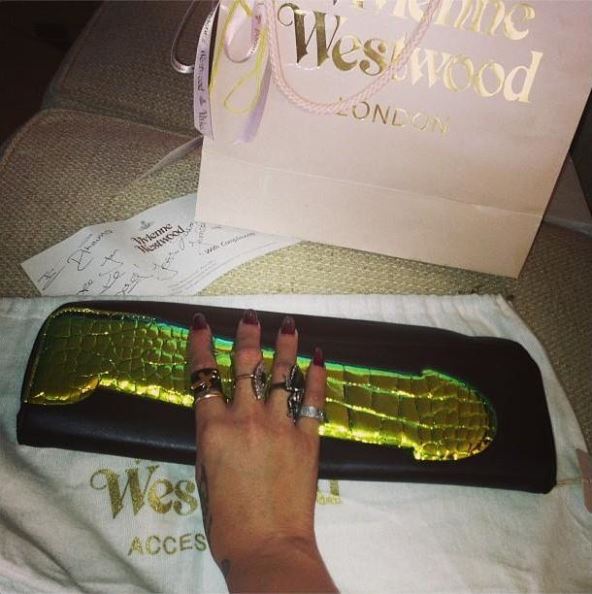 Obučena u kombinezon sa svim zastavama ovog sveta, Rijana je izašla iz jednog londonskog hotela sa crnom tašnicom u ruci, a potom je okrenula ka fotoreporterima. Tašna na sebi ima zlatni penis. Tu torbicu Rijana je dobila na poklon od legendarne kreatorke Vivijen Vestvud.