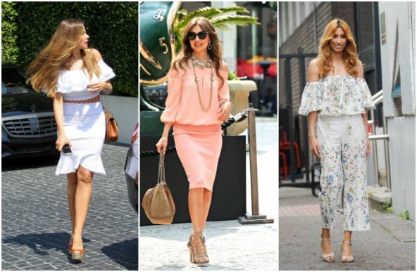 Modni stručnjaci došli su na ideju da upare dva odlična trenda - majicu bez ramena i suknju koja ne izlazi iz mode, odnosno suknju dužine ispod kolena.