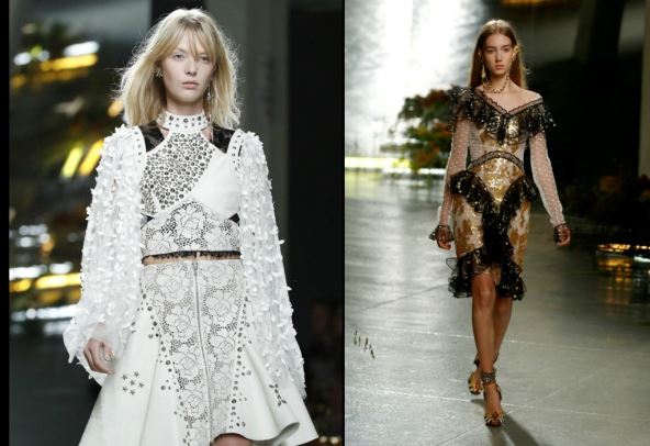 Vez, čipka i cvetni detalji dominitaju njihovom romantičnom prolećnom bajkom. Od materijala najprisutniji su prozirni, u kombinaciji sa kožom i tilom. Kao kontrast bledim i nežnim bojama poput bele i bež, pojavljuju i jarko crvena i crna.