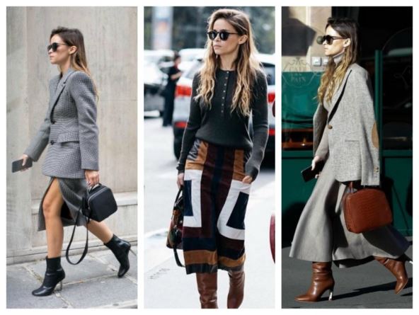 Usku rolku, u kombinaciji sa širom suknjom srednje dužine, Ruskinja je začinila ležerno prebačenim blejzerom muškog kroja i tamnosmeđim čizmicama, dok se od modnih dodataka odlučila za dve ručne torbice - torbu boje konjaka, nalik manjoj aktovci, i bež torbicu efektne ručke s potpisom Gabriele Hearst.