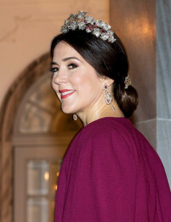 Krunu ukrašenu crvenim dragim kamenjem 2000. godine nasledio je princ Frederik od kraljice Ingrid, a Meri je rado nosi na većim kraljevskim događanjima. Uz već klasičnu frizuru za jednu princezu, Meri je elegantan stajling naglasila visećim naušnicama i narukvicom koja je imala drago kamenje u boji krune, ali i ogrtača.