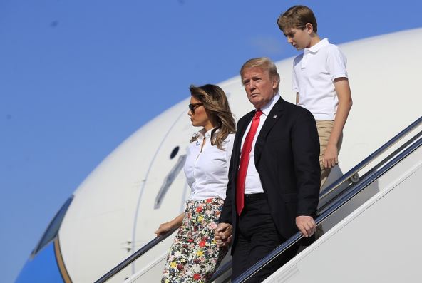 Za povratak u Vašington sa suprugom Donaldom i sinom Baronom odabrala je hit cvetne pantalone "cigaret" kroja, uz koje je obukla jednostavnu belu košulju.