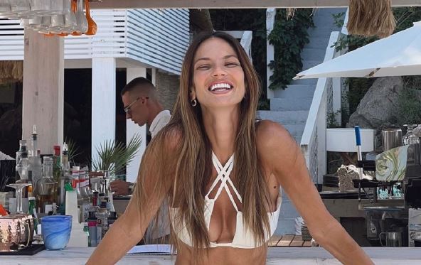 Beli kupaći kostim sa neobičnim gornji delom i dubokim donjim na prelepoj Danijeli istakao je sve ono što je na njoj najlepše.