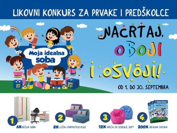 U periodu od 1.do 30.septembra organizuje se deveti po redu likovni konkurs pod nazivom „NACRTAJ, OBOJI I OSVOJI“, sa temom „Moja idealna soba“. Ove godine prijave na konkurs su online preko korporativnog sajta www.formaideale.rs.