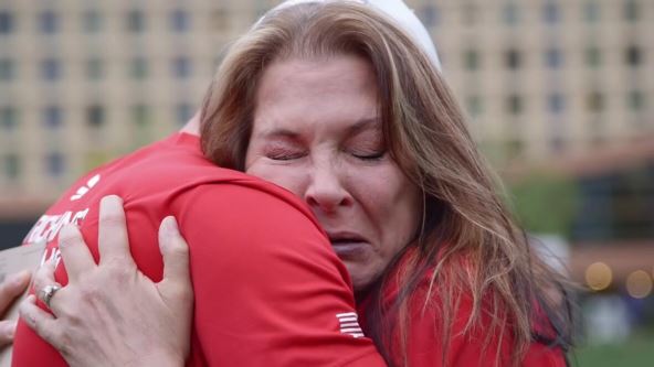 Želeći da čitavom svetu najavi šta sledi, pozvao je lokalnu televiziju. Iako je Stejsi znala da će konačno upoznati svoje dete, on je uspeo da je iznenadi. Prikrao joj se iza leđa i samo joj se bacio u zagrljaj. Svi okupljeni nisu mogli da zadrže suze, a izbezumljena Stejsi je kroz vrisak samo ponavljala jednu te istu rečenicu: "Nisam mogla da te držim u naručju".