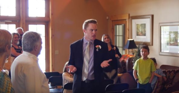 On je okupio porodicu i prijatelje. Svi su bili iznenađeni, a roditelji su i dalje bili potpuno nesvesni šta će se dogoditi. Čekao je svoje roditelje dok su se peli na travnjak, a onda im je konačno rekao šta se zapravo dešava.