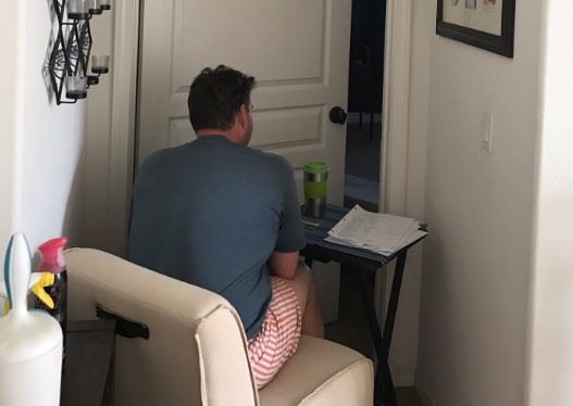 Čak je ispred sobe preneo svoj radni sto kako bi radio, ali nadgledajući svoju suprugu. Fotografija je za kratko vreme podeljena oko 7.000 puta.