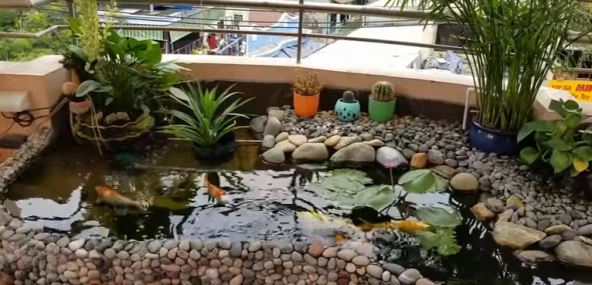 Ovaj čovek je na terasi napravio ribnjak u kojem uzgaja Koi ribu, poznatiju kao japanski šaran.