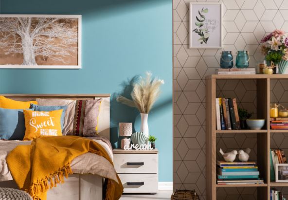 Uz francuski ležaj možete postaviti klub stola ATRIA, koji će uneti modernu notu u vašu spavaću sobu, a kao prostor za odlaganje knjiga i omiljenih sitnica možete iskoristiti i zidne police, usklađene poput zidne galerije. Idealan izbor za ovakav dizajn na vašem zidu je set zidnih polica TRITTICO, uz dodatak zidnih polica CHANY.