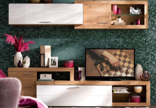Bela daje osećaj elegancije i prozračnosti koja dodatno otvara prostor, dok mu drvo daje toplinu i osećaj rustičnosti. Beli zidovi učiniće moderan stan prostranijim, ali bi bilo sjajno da na to unesete malo ličnog pečata i probudite energiju u ambijentu. Kombinacija bele i drvo dekora na komadu nameštaja, poput regala KANAS, daje upravo taj efekat. Ukoliko lepo rasporedite elemente regala, a dekoraciju naglasite jarkim bojama, neočekivanim paternom tepiha ili tapete i trendi kućnim aksesoarima, dobićete ambijent o kakvom ste maštali.