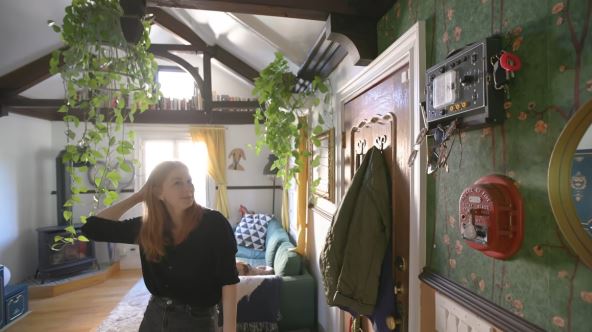 60 kvadrata male kuće pretvorila je u bajkovito skrovište koje odiše ženstvenošću. Tu je lampa koja je ujedno i držač za biljke, stolica koja ima stepenice za njene kućne ljubimce kako bi se lako popeli njoj u krilo dok radi, krevet koji izgleda kao kućica na drvetu, a stakleni prozor napravljen od vitraža je pravo umetničko delo.