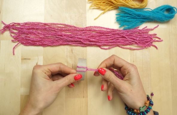 Kada ste to uradili, vunicu koja slobodno pada podelite na dva dela, i provucite kroz prsten, pa jednim komadom vunice vežite na sredini.