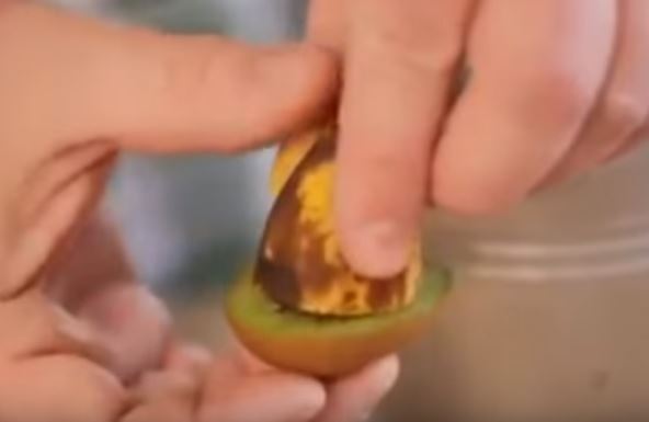 Jednostavno, isekao je kraj banane sa korom i polovinu kivija, stavio jedno na drugo, tako da se plodovi međusobno dodiruju i stavio u zemlju i zalio vodom.
