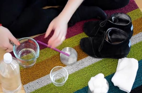 Ukoliko imate obuću od velura, probajte prvo kako će reagovati na sirće, na nekoj manjoj površini. Ukoliko ne menja boju, nastavite tuferom ili srednje tvrdom četkicom (može i ona za zube) da ih nežno trljate dok fleke od soli ne nestanu.