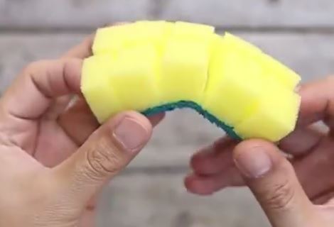 Zasecite sunđer uzduž i popreko. Bez puno muke ćete očistiti npr. metalnu zaštitu na ventilatoru.