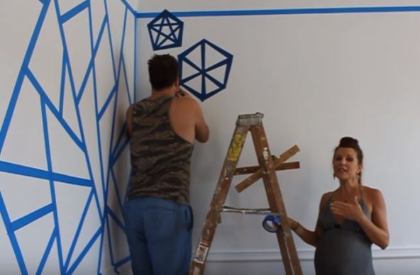 U nastavku pogledajte genijalnu metodu krečenja pomoću trake i različitih boja. Zalepite traku tako da na zidu ostanu razni geometrijski oblici (u ovom slučaju trouglovi), a onda raznovrsnim bojama popunite unutrašnjost.