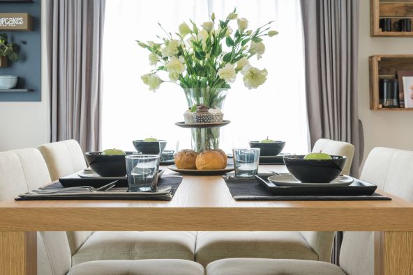 Da, pravougaoni trpezarijski stolovi, možda jesu popularnija opcija i nude dodatne mogućnosti i veću funkcionalnost, ali feng šui sugeriše upotrebu ovalnih ili okruglih stolova umesto njih. U kockastom ili pravougaonom formatu, trpezarijski stolovi pružaju dobar protok čija samo onda kada poseduju krivudave linije.