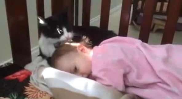 Pogledajte na koji način simpatičan mačor neguje svoju najbolju prijateljicu, plavokosu devojčicu Hejzel