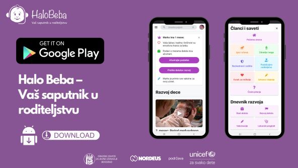 Omiljeno telefonsko savetovalište za roditelje “HaloBeba” dobilo je novu mobilnu aplikaciju, interaktivni vodič kroz roditeljstvo i razvoj malog deteta sa nizom sadržaja i novim iskustvom učenja za roditelje. Kroz aplikaciju „HaloBeba – Vaš saputnik u roditeljstvu“ roditelji će dobiti ažurirani i personalizovani sadržaj koji se odnosi na praćenje rasta i razvoja deteta u ranom uzrastu, dojenje, ishranu, imunizaciju, planiranje lekarskih pregleda, ideje za podsticanje razvoja kroz igru, razgovor, čitanje sa decom,odgovore na roditeljske zabrinutosti i mnogo drugih tema. Informacije i saveti su zasnovani na najnovijim svetskim saznanjima o razvoju deteta, a UNICEF-ovi eminentni stručni saradnici prilagodili su ih za roditelje u Srbiji.