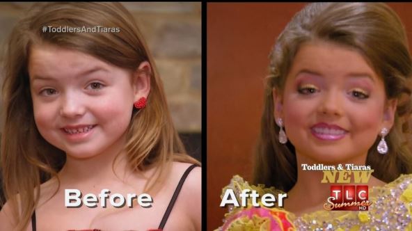 Pošto je to uzrast kada deca ili nemaju zube ili nemaju sve, stavljaju im se proteze, kako bi imale savršene, blistave zube, poput odraslih! Količina šminke koju im stavljaju previše je i za odrasle žene, a ne za osetljivu dečju kožu, tu su i veštačke trepavice...
