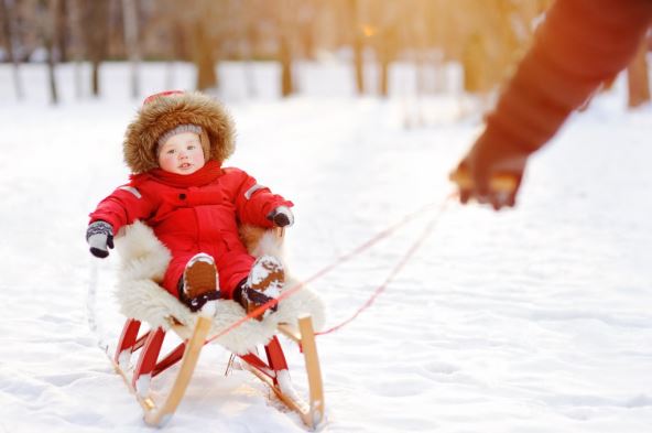 Deca vole sneg i uživaju u igrama na snegu. Veoma su spretni za sportove klizanja i skijanja kada nauče ove sportove od malih nogu jer nemaju strah. Već oko četvrte godine mogu da klizaju i skijaju ukoliko pokažu interesovanje. Kada započnu da klizaju potrebno je da često klizaju kako bi savladali ovaj sport. Deca nemaju strah i osećaju se važno što nauče neku novu aktivnost. Na sankanje i grudvanje mogu čim nauče da stoje/sede. U početku potrebno je da ih neko drži na sankama, a kasnije kako rastu mogu i sama. Nije strašno ako dete u toku igre bude pogodjeno u lice snegom, neće se od toga prehladiti, ali svakako deci treba skrenuti pažnju da izbegavaju gađanje u lice da ne bi promrzli otkriveni delovi tela.