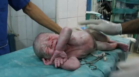 Svet je preplavljen strahotama iz Sirije usled bombardovanja. Jedna od njih je i ovaj snimak carskog reza. Trudnica u poodmakloj trudnoći je stradala u bombardovanju. Lekari su učini sve što je u njihovoj moći da se beba rodi, ali ona nije disala. Pokušavali su da je ožive, ali nije bilo nikakvih znakova. Međutim, nisu odustajali, a onda su konačno nakon 20 minuta čuli bebin plač.