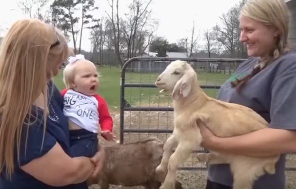 Bebesu same po sebi zanimljive, ali priča je još interesantnija ukoliko im se pridruži neka životinja. Pogledajte ovu šarmantnu bebu koja se po prvi put upoznaje sa jaretom dok je majka drži u naručju.