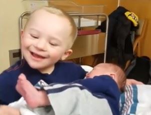 Mnoga deca postanu ljubomorna, ali izgleda da to za ovog mališana ne važi. Njegovoj sreći nije bilo kraja kad je konačno ugledao svog mlađeg brata.