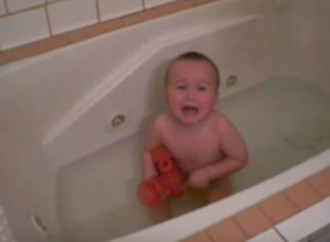 Tata je ušao u kupatilo, a malena mu se kroz suze žali na "strašilo" koje sedi sa njom u kupatilu, tražeći od tate da je uzme. Pogledajte i sami kako je to izgledalo: