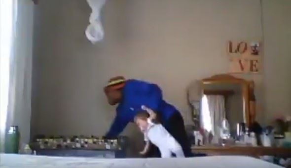 Na snimku se vidi kako dadilja nosi bebu držeći je za samo jednu ruku i zatim grubo bacadok devojčica plače.