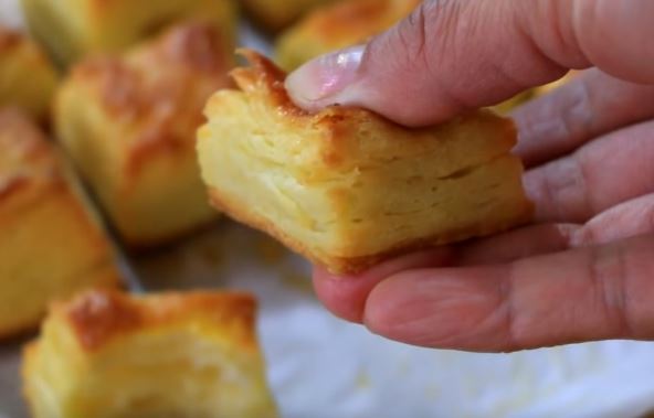 Ponovite još jednom ovaj postupak. Na kraju razvucite, isecite krajeve pa potom trake i kockice. Možete ih vaditi i čašicom. Napunite ih sirom.