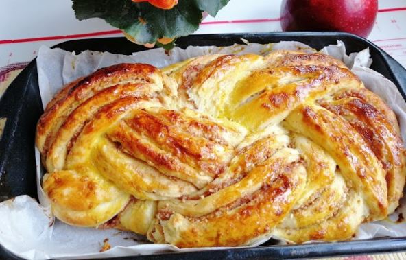 Razviti testo na pola centimetra debljine, namazati džemom i posuti mlevenim orasima. Uviti u rolnicu pa oštrim nožem raseći rolnicu na pola po dužini pa isplesti pletenicu.