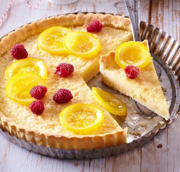- Tart prelijte kremom i dekorišite voćem.