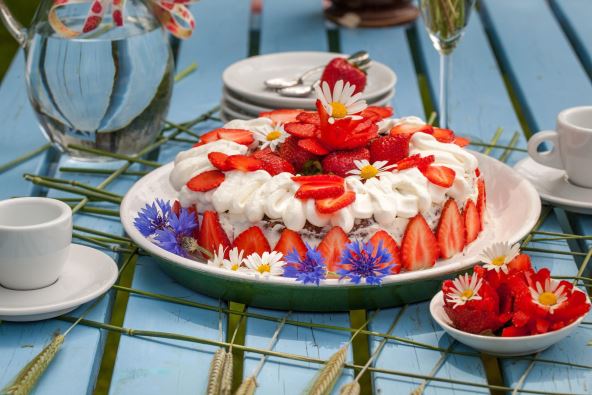 - Kada izvadite tortu iz frižidera odvojite obruč, te celu tortu premažite umućenim šlagom.